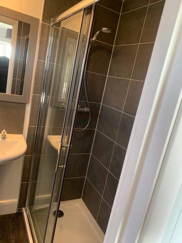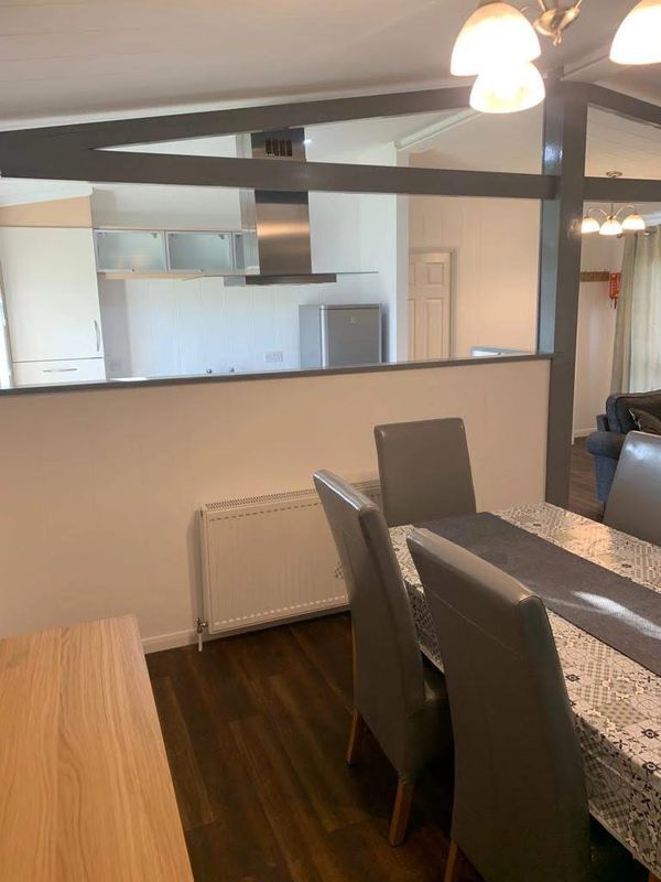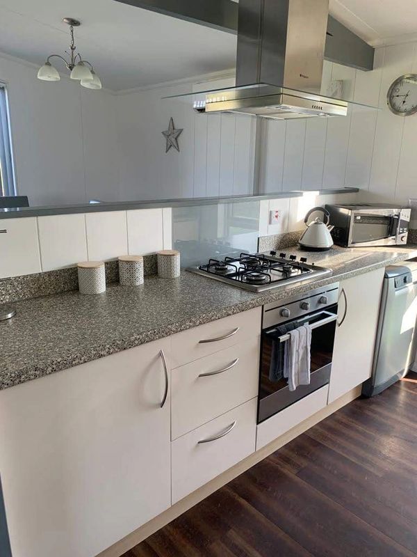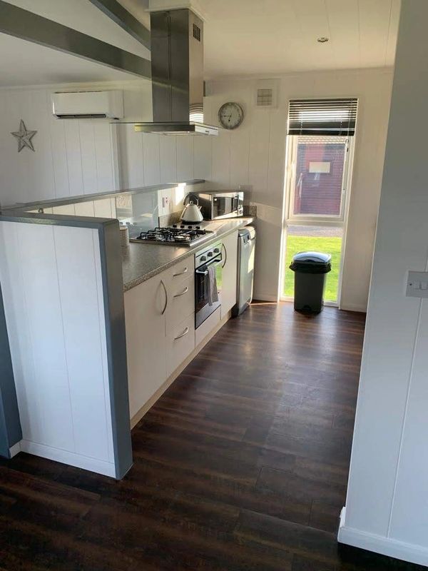 The kitchen is equipped with an oven, microwave, kettle, toaster, fridge freezer, dishwasher and tableware.